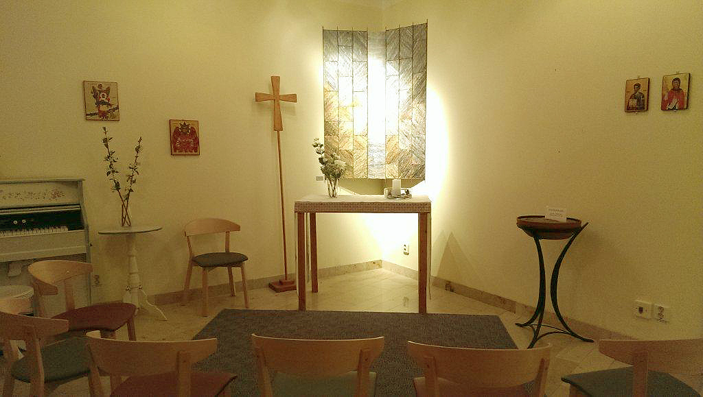 Andaktsrummet hålls öppet dygnet runt för egna tankar, bön, stillhet, tystnad och vila. En andakt/gudstjänst hålls i regel onsdagar 14.00-14.20.